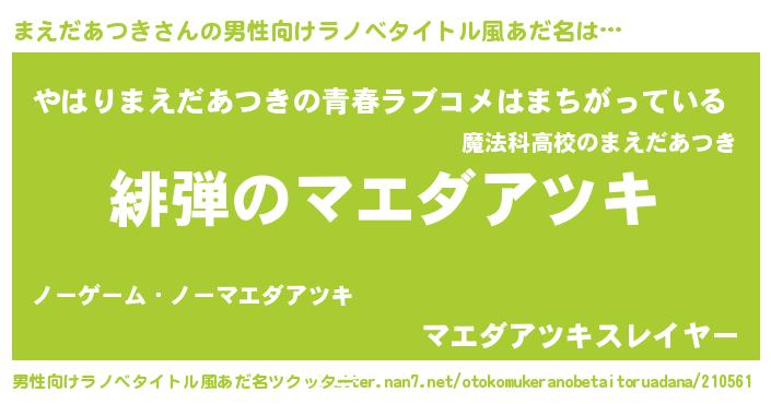 | 女子向けラノベタイトル風あだ名 | 『シンデレラまえだあつき家の靴箱館』 |