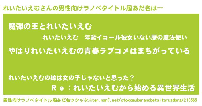 | 女子向けラノベタイトル風あだ名 | 『れいたいえむの雑貨屋さん』 |