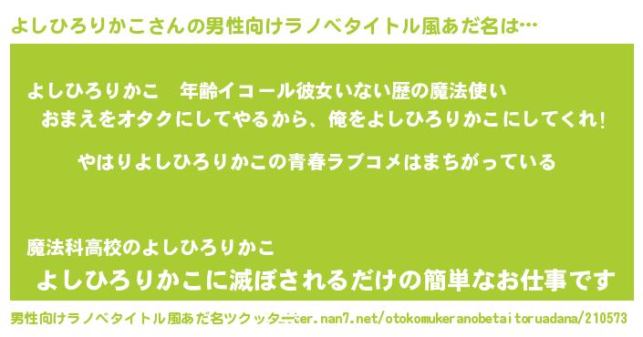 | 胡散臭い通販商品みたいなあだ名 | 『幸せが訪れる高級そうな壺…その名も「よしひろりかこ」』 |