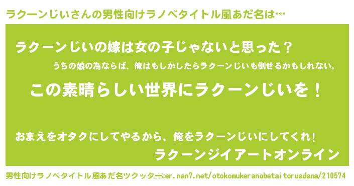 | 意味不明あだ名 | 『住所不定無職ラクーンじい(47歳)』 |