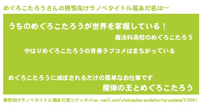 | ファンタジー風あだ名 | 『エターナルメグロコタロウー』 |