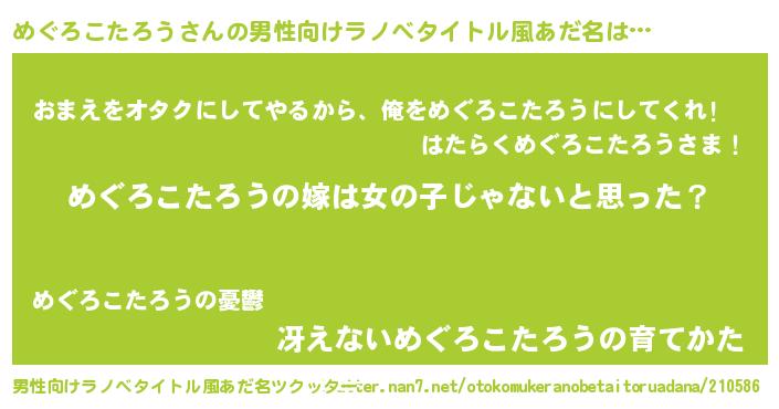 | 女子向けラノベタイトル風あだ名 | 『めぐろこたろう様がみてる』 |
