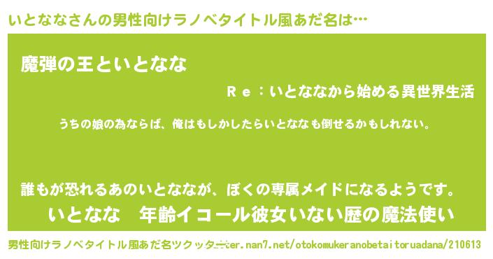 | 女子向けラノベタイトル風あだ名 | 『いとななの婚約者』『闇のいとなな』 |