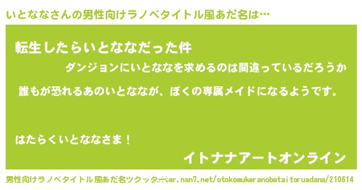 | 女子向けラノベタイトル風あだ名 | 『異世界でカフェいとななを開店しました。』 |