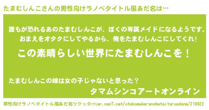 | 意味不明あだ名 | 『住所不定無職たまむしんこ(12歳)』 |