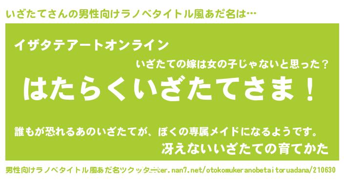 | ヒーロー風カッコイイあだ名 | 『スーパーイザタテ』『幻影騎士イザ』 |