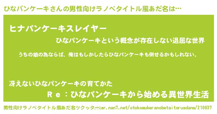 | ファンタジー風あだ名 | 『エターナルヒナパンケーキー』 |