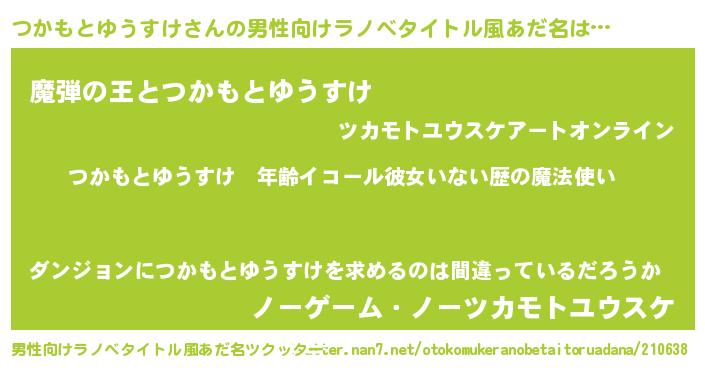 | 胡散臭い通販商品みたいなあだ名 | 『あなたにだけ特別に提供する限定10本のレアな日本酒…その名も「つかもとゆうすけ」』 |