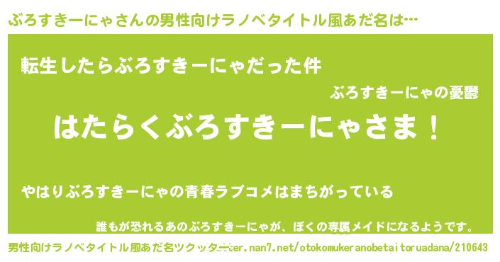 | ヘコむあだ名 | 『ぶろすきーにゃ(笑)』『ぶろもー』 |