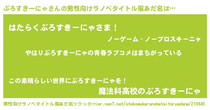 | 意味不明あだ名 | 『ぶろすきーにゃフォーエバー』 |