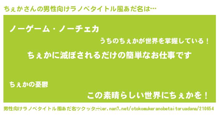 | 欧米人風あだ名 | 『アンジェラ・ちぇか』『ダニエルちぇか』 |