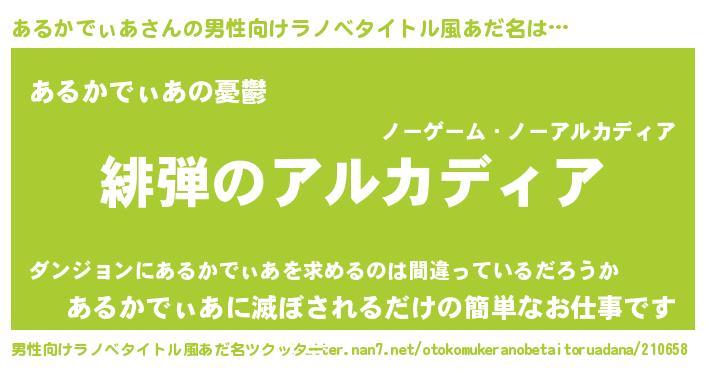 | 女子向けラノベタイトル風あだ名 | 『シンデレラあるかでぃあ家の靴箱館』 |