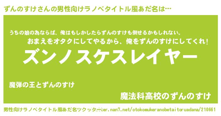 | 女子向けラノベタイトル風あだ名 | 『婚約破棄系悪役ずんのすけに転生したので、保身に走りました。』 |