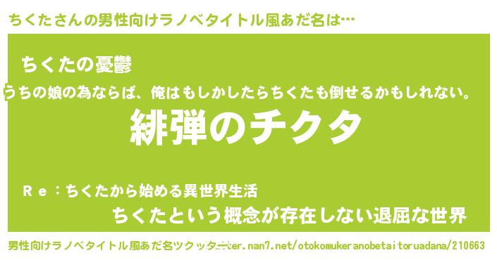 | ヘコむあだ名 | 『ちくもー』『ちくた(苦笑)』『豆乳』 |