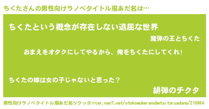 | 女子向けラノベタイトル風あだ名 | 『ちくた夫妻のなれそめ』 |