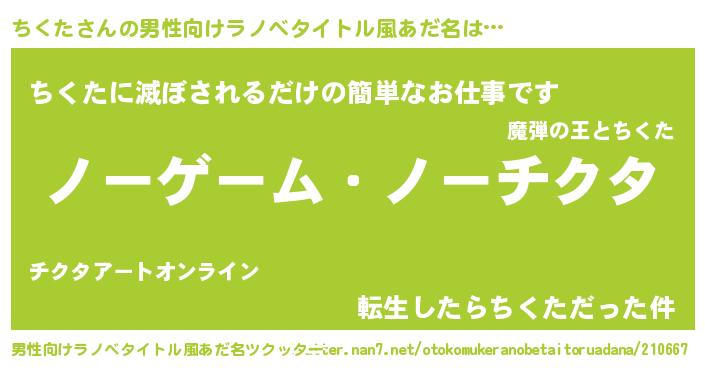 | 伝説のあだ名 | 『救世主となる錬金術士ちくた』 |