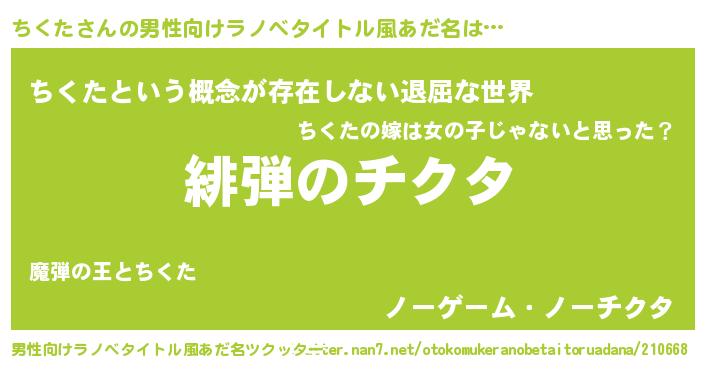 | ヘコむあだ名 | 『ちくた(震え声)』『ちくっぺ』 |