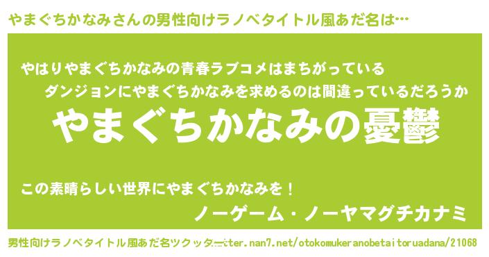 | 女子向けラノベタイトル風あだ名 | 『(仮)やまぐちかなみのやんごとなき事情』 |