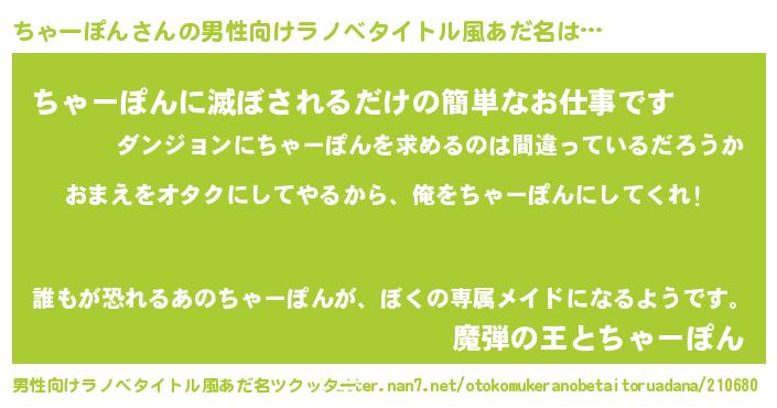 | 女子向けラノベタイトル風あだ名 | 『ちゃーぽん恋絵巻』 |