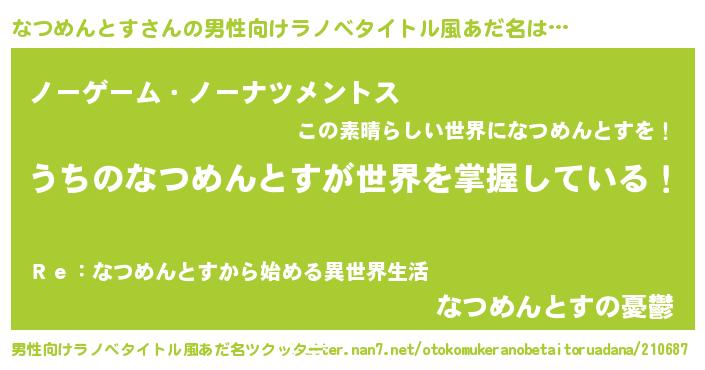 | 女子向けラノベタイトル風あだ名 | 『男装なつめんとすの憂鬱な任務』 |