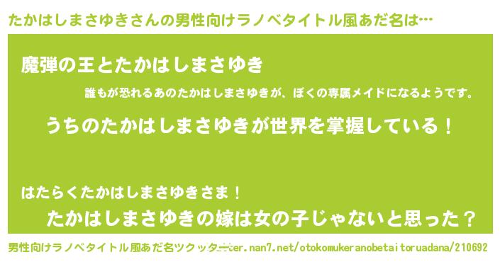 | 意味不明あだ名 | 『住所不定無職たかはしまさゆき(9歳)』 |