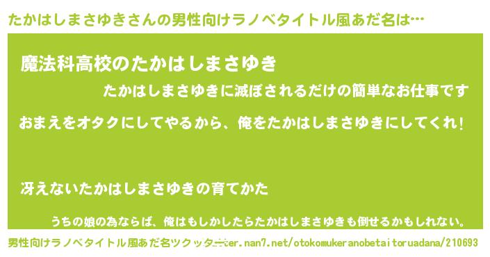 | 女子向けラノベタイトル風あだ名 | 『たかはしまさゆき夫妻のなれそめ』 |