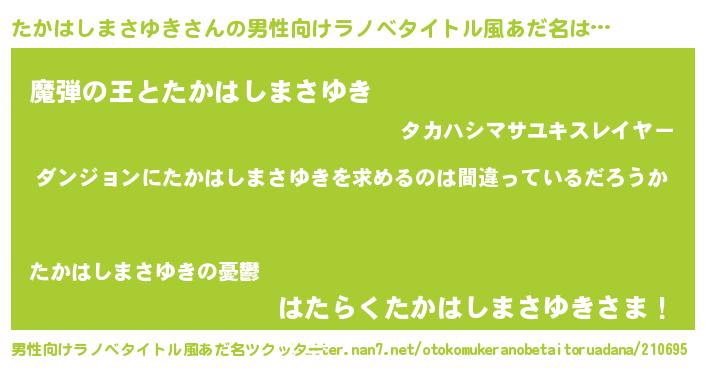 | 女子向けラノベタイトル風あだ名 | 『たかはしまさゆきは平凡を望む』 |