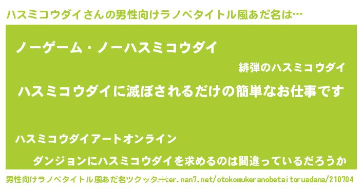 | ピコ太郎風あだ名 | 『ハハ太郎』『ハス史郎』『ハコ四郎』 |