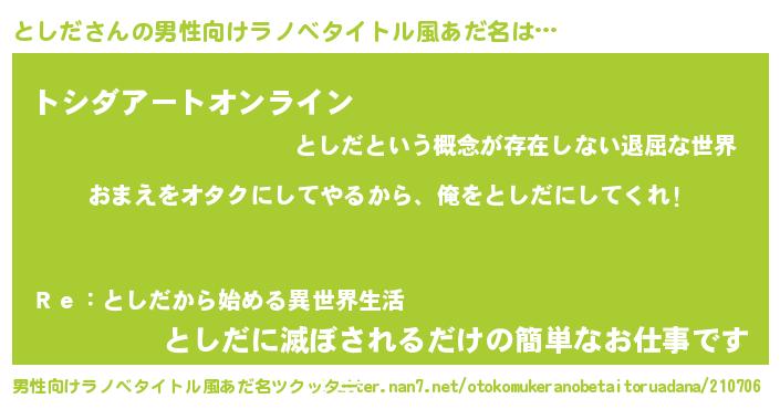 | 女子向けラノベタイトル風あだ名 | 『としだ夫妻のなれそめ』 |