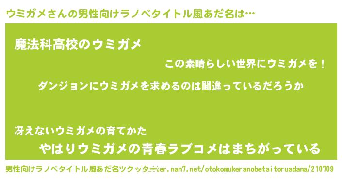 ウミガメさんの男性向けラノベタイトル風あだ名をツクッター!