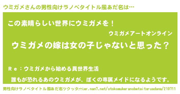 | 女子向けラノベタイトル風あだ名 | 『ウミガメの卵を拾いまして』 |