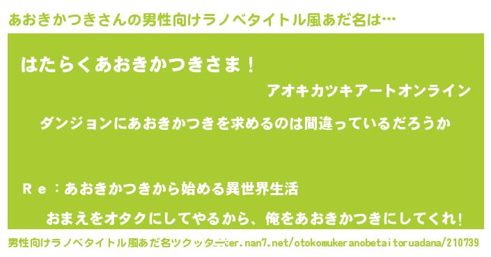 | 女子向けラノベタイトル風あだ名 | 『あおきかつきは平凡を望む』 |