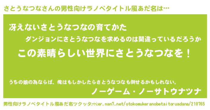 | 意味不明あだ名 | 『住所不定無職さとうなつな(39歳)』 |