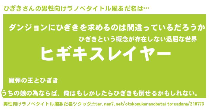 | 胡散臭い通販商品みたいなあだ名 | 『信頼と実績のペンダント…その名も「ひぎき」』 |