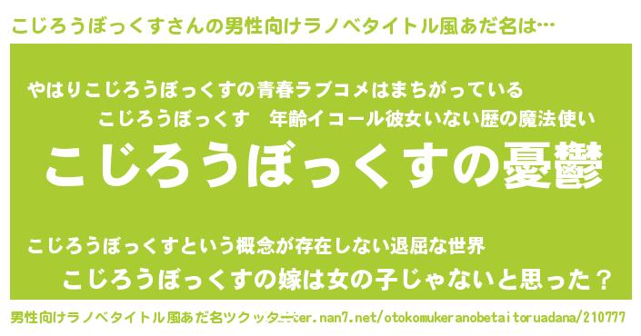 | 肩書あだ名 | 『こじろうぼっくす御曹司』 |