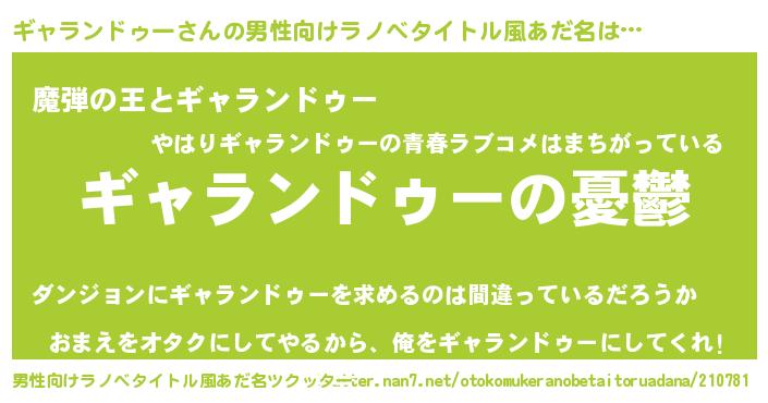 | 胡散臭い通販商品みたいなあだ名 | 『必ず成功する霊験あらたかなお札…その名も「ギャランドゥー」』 |