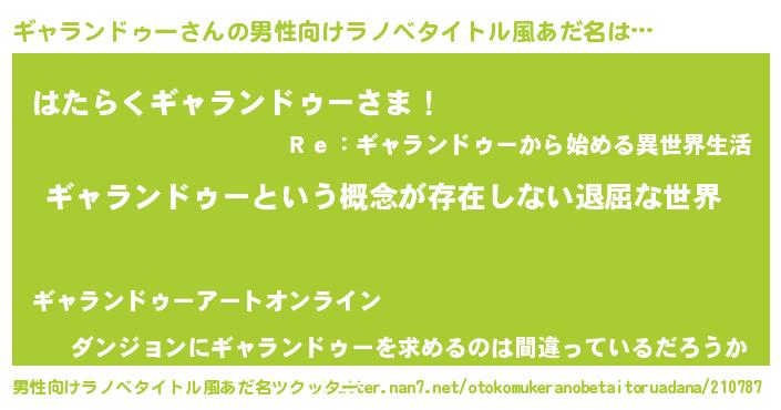 | 胡散臭い通販商品みたいなあだ名 | 『絶対に幸福をもたらす健康食品…その名も「ギャランドゥー」』 |