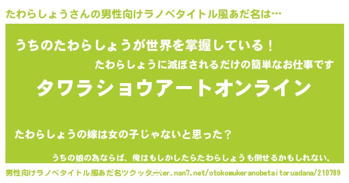 | 女子向けラノベタイトル風あだ名 | 『誰かこのたわらしょうを説明してください! ~契約から始まるウェディング~』 |