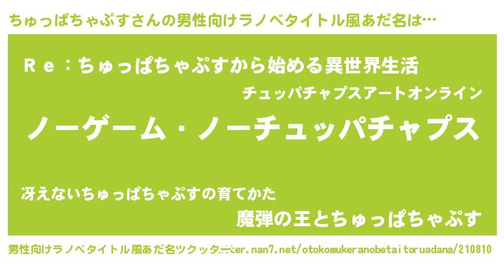 | 女子向けラノベタイトル風あだ名 | 『ちゅっぱちゃぷす恋絵巻』 |