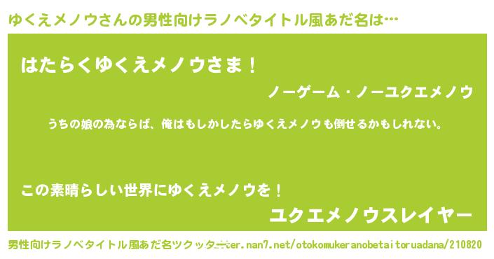 | ファンタジー風あだ名 | 『エターナルユクエメノウー』 |