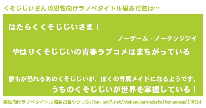 | 女子向けラノベタイトル風あだ名 | 『くそじじいの雑貨屋さん』 |