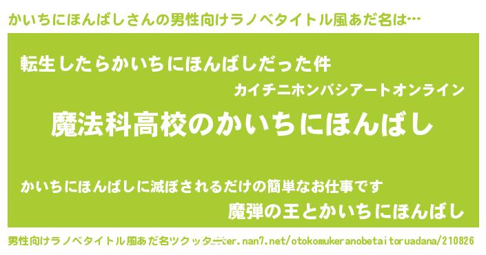 | 女子向けラノベタイトル風あだ名 | 『かいちにほんばしなんてお断りですっ。』 |