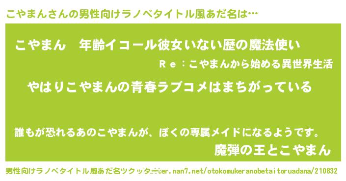 | 胡散臭い通販商品みたいなあだ名 | 『世界が平和になる高級そうな絵画…その名も「こやまん」』 |