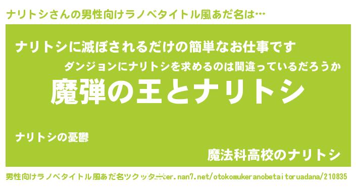 | ヒーロー風カッコイイあだ名 | 『仮面ナリダー』『究極戦士ナリトシ』 |