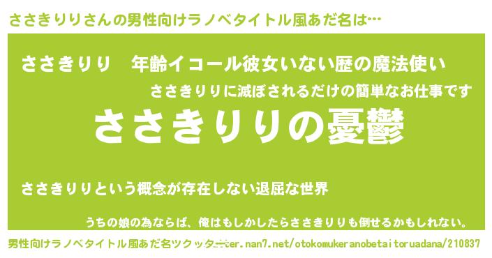 | 胡散臭い通販商品みたいなあだ名 | 『必ず成功するブレスレット…その名も「ささきりり」』 |