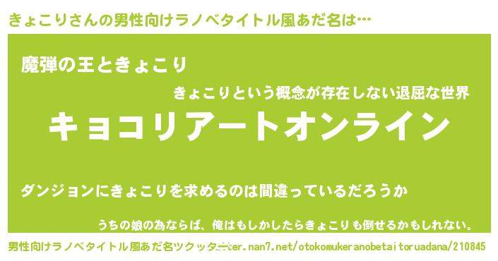 | 女子向けラノベタイトル風あだ名 | 『きょこり姫と円卓の騎士』 |