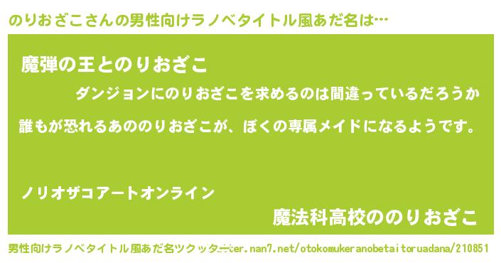 | 女子向けラノベタイトル風あだ名 | 『異世界でカフェのりおざこを開店しました。』 |