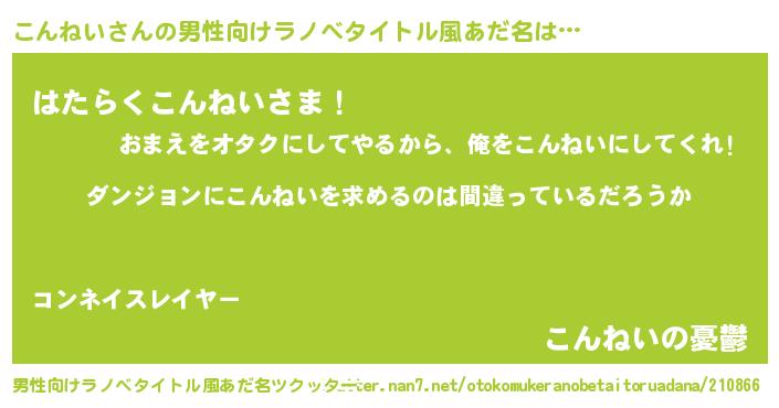 | 女子向けラノベタイトル風あだ名 | 『こんねいは平凡を望む』 |