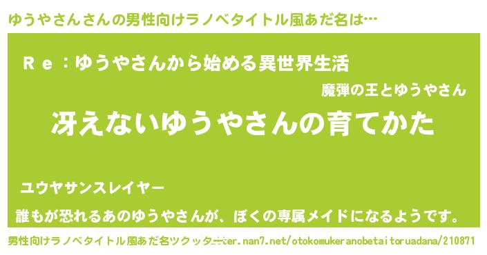 | ヘコむあだ名 | 『ゆうやさん(笑)』『ゆうふぇ~』 |