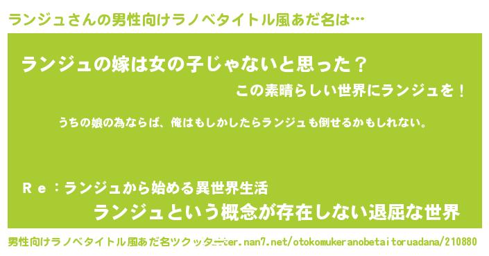 | 胡散臭い通販商品みたいなあだ名 | 『世界が平和になる高級そうな皿…その名も「ランジュ」』 |
